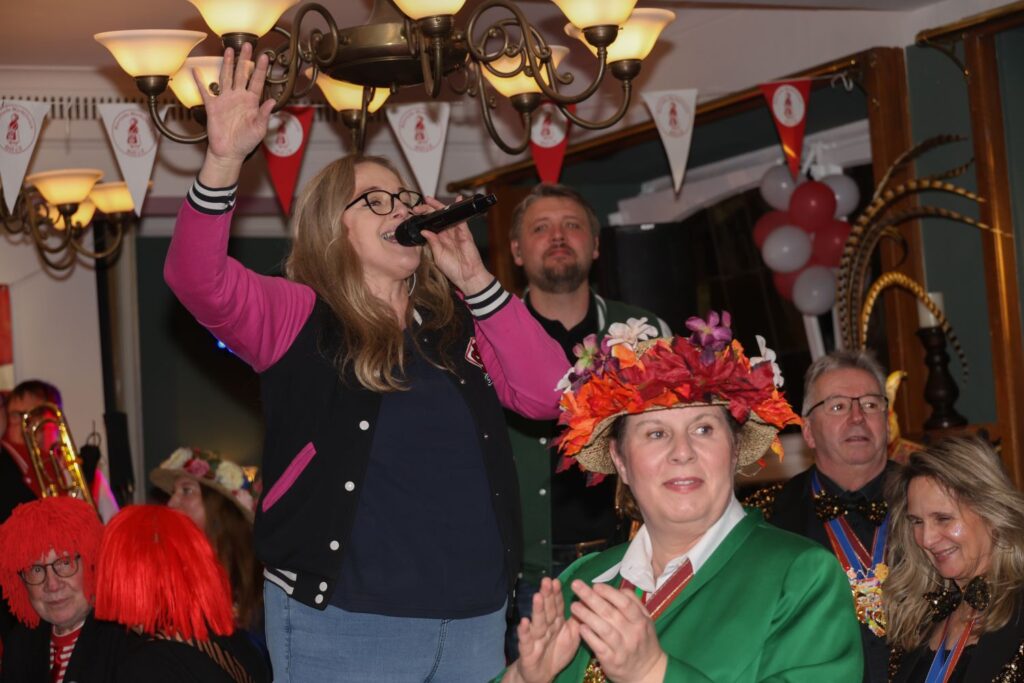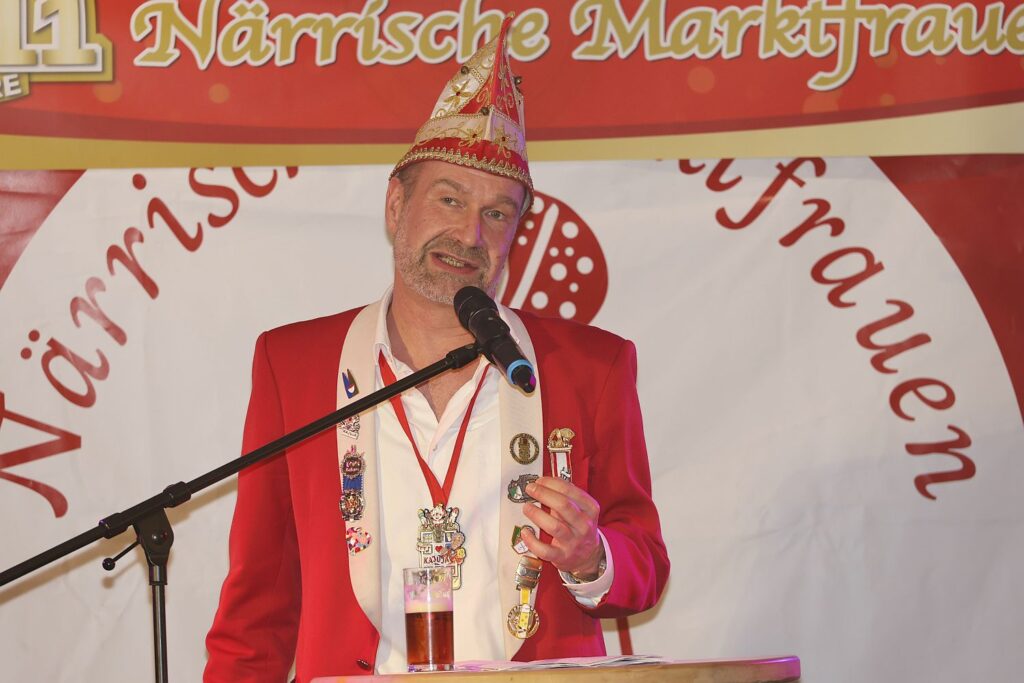 Für das Training der Lachmuskeln waren der Sitzungspräsident und später Lieselotte Lotterlappen zuständig. Thomas „Meffi“ Meffert, das Fanfarencorps „Die Hammer“ und Alt Schuss gestalteten das weitere musikalische Programm, bis es zum großen Finale mit allen Marktfrauen gegen Mitternacht kam.