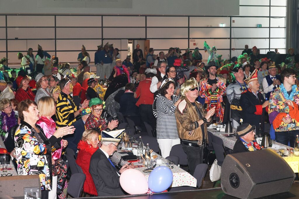 Während beim Auftritt von Et´Zweigestirn eher zuhören angesagt war, hieß es bei Alt Schuss Singen, Tanzen und Schunkeln, was auch ausgiebig getan wurde. Die Lachmuskeln wurden anschließend von Dave Davis in seiner Paraderolle als Toilettenmann Motombo trainiert.