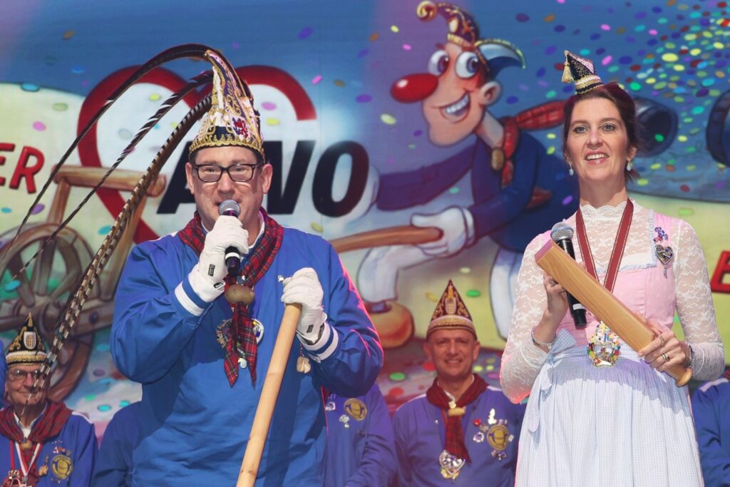 Da das Prinzenpaar etwas Verspätung hatte, zog die Prinzengarde Blau-Weiss schon mal allein auf und unterhielt mit ihrem Gardetanz und Jens Lier. So wurde die Zeit überbrückt, bis es hieß „empfangt das Prinzenpaar“. Für Prinz Marcus I. und seine Venetia Nicole geht es jetzt in die heiße Phase und freie Tage sind nicht mehr drin.
