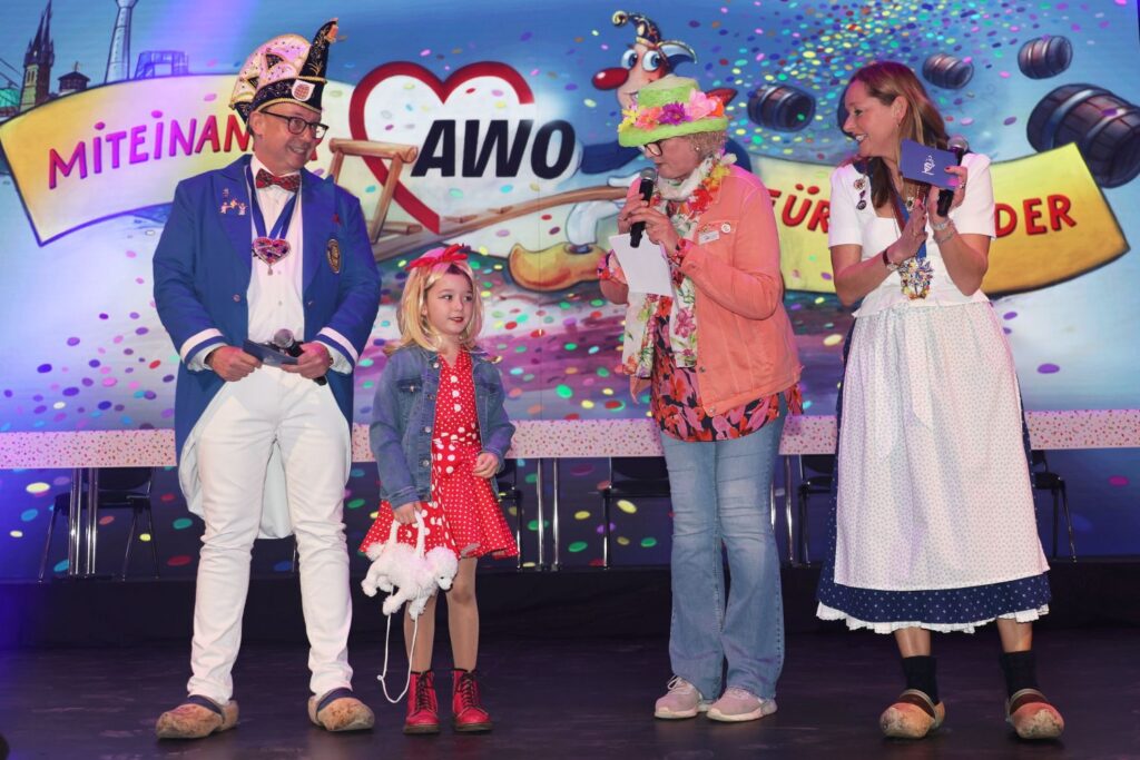 Die Moderation übernahmen Christoph “Töffi” Gollak und Anke Conti Mica. Marion Warden, Geschäftsführerin des Kreisverband der AWO Düsseldorf begrüßte die Gäste. Traditionell werden bei der Sitzung Spenden für einen guten Zweck gesammelt. Über 1222,22 Euro konnte sich die heilpädagogische Tagesgruppe der AWO freuen, die das Geld für Ausflüge einsetzen wird, da viele Kinder noch nie den Rhein gesehen haben.