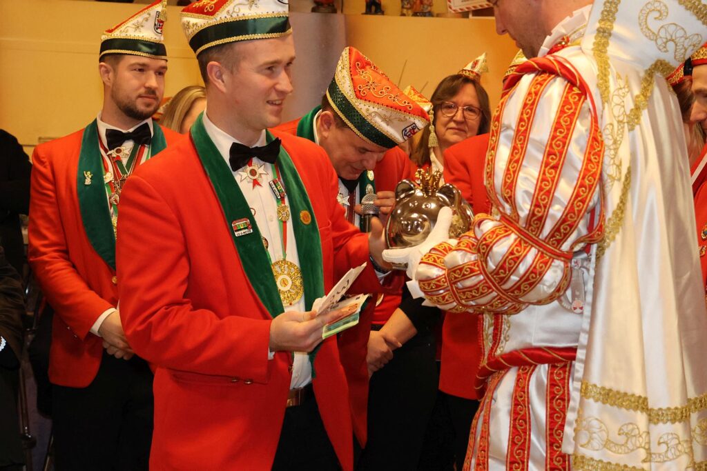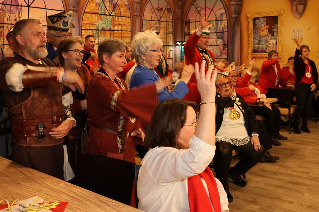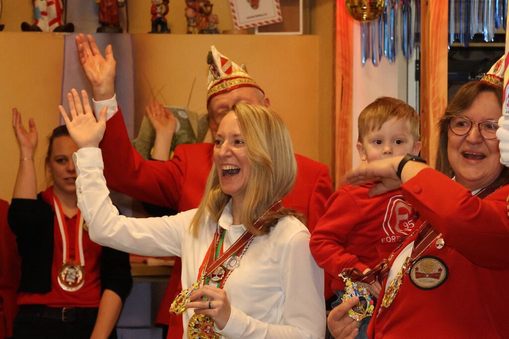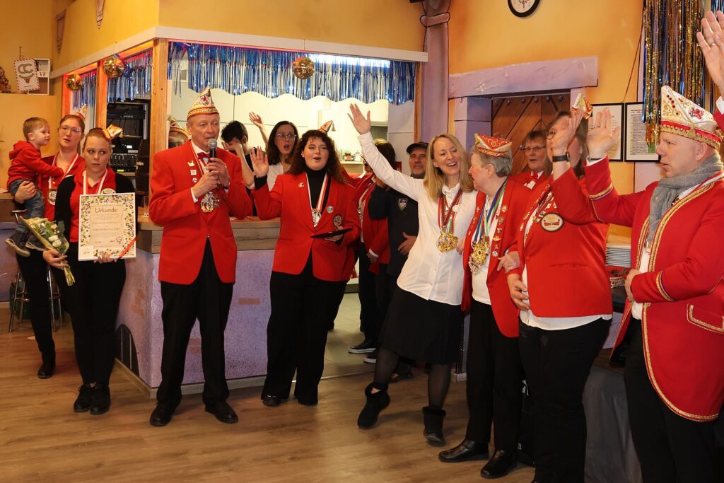 Zahlreiche Vereinsmitglieder und Gäste feierten am Samstag mit. Der Vorstand, bestehend aus Peter Reder, Birgitt Reuter sowie Katharina und Kevin Kunert-Ingwer, hatten neben den Geschenken für das Prinzenpaar auch noch einige Ehrungen vorbereitet. Zu Tränen gerührt war Uschi Ackermann, die ehemalige Kassiererin des Vereins. Sie wurde zum Ehrenmitglied ernannt. Gaby Le Brünn erhielt eine Auszeichnung für die 2×11-jährige Mitgliedschaft.