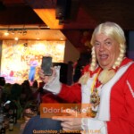In diese ausgelassenen Stimmung tauchte das Prinzenpaar ein. Wahrscheinlich haben sie noch keine Damensitzung erlebt, bei der die Männer des Vereins so integriert werden. Quatschköpp Präsident Thomas Krohnen im schicken Charleston-Kleid stellte Prinz Marcus I. extra die Standarten-Stange von Adjutant Thommy zur Verfügung, aber tanzen wollte der Präsident daran dann doch nicht.