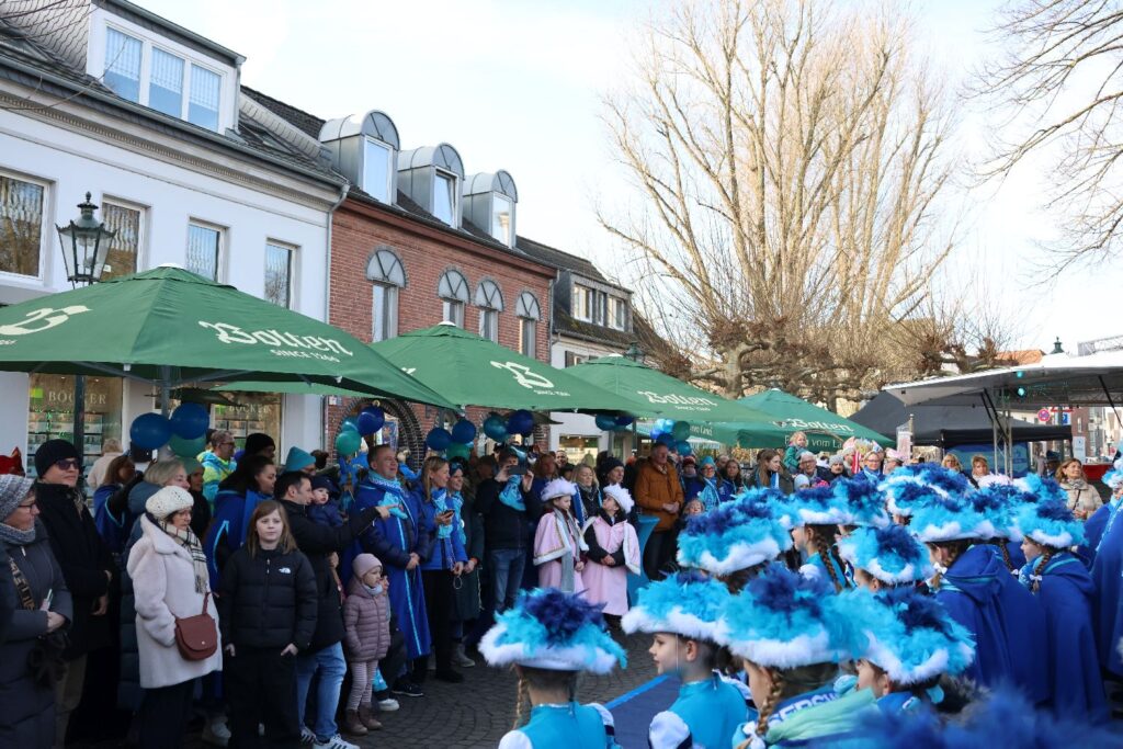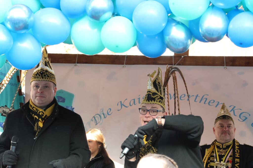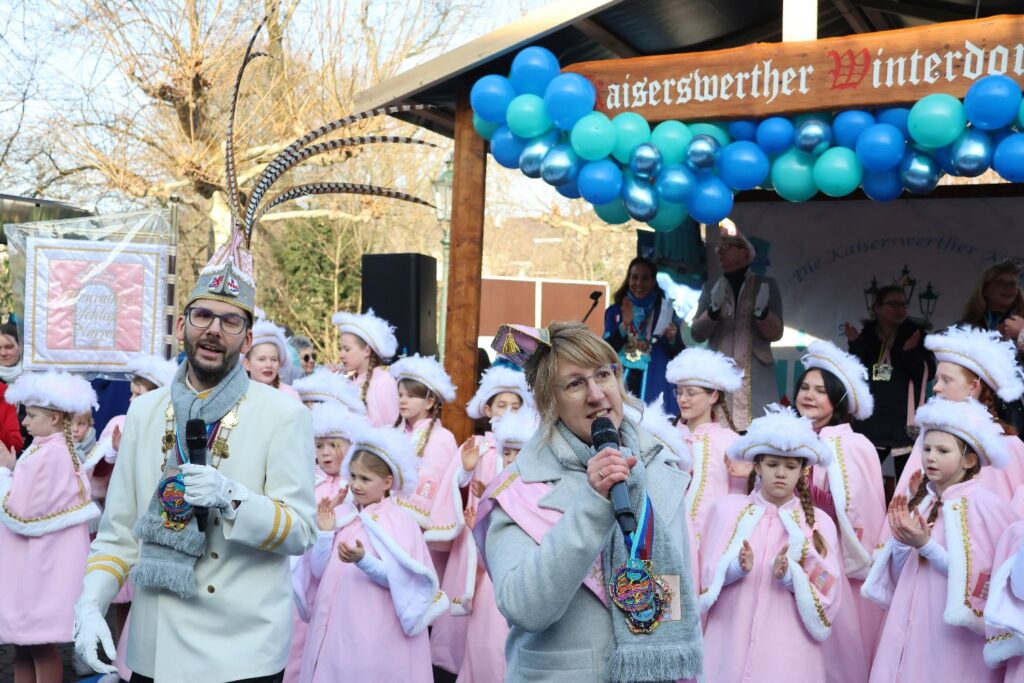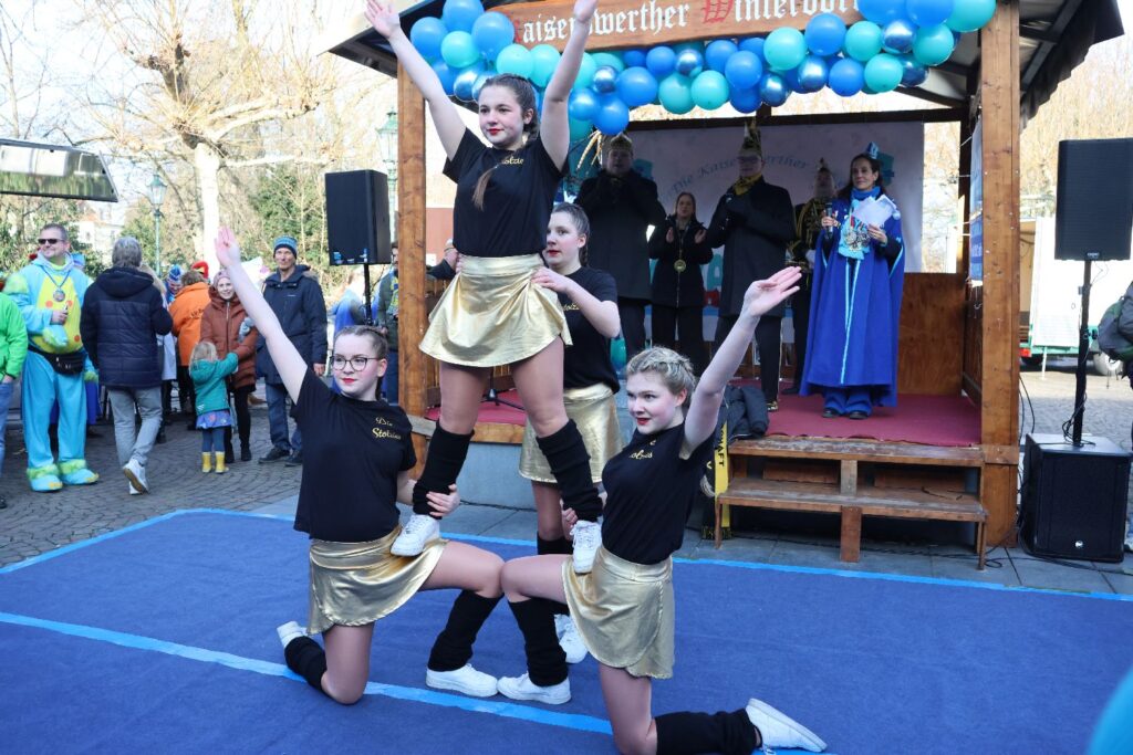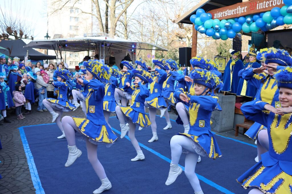 Das Biwak lief zu diesem Zeitpunkt erst eine gute Stunde, trotzdem konnte man die vielen jungen Tänzerinnen kaum noch zählen. Und die Programmpunkte setzten sich noch bis zum frühen Abend fort. Da waren die Närrischen Schmetterlinge mit Tanzgarde und Dreigestirn, die weiteren Tanzgarden der Kaiserswerther sowie die Originale mit ihren Kinderprinzenpaar und Tanzgarde. Außerden schauten am Nachmittag das Düsseldorfer Prinzenpaar, der Prinzenclub der Stadt Hilden und als musikalische Highlights die Wimmer Band und die Swinging Funfares vorbei. Um die musikalischen Zwischentöne kümmerte sich DJ Mixael.