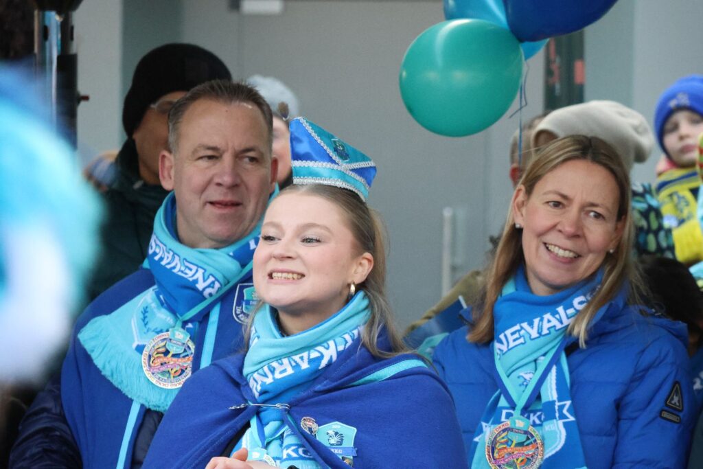 Mit Tanz und Gesang ging es weiter, denn aus dem Düsseldorfer Süden hatten sich die Benrather Schlossnarren auf den Weg in den Norden gemacht. Schloßgraf Sven II. und seine Schloßgräfin Janine wurden von den Schlosssternchen begleitet. Die jungen Tänzerinnen zeigten ihr Können und die Tollitäten präsentierten ihr Lied. Eigentlich hätten sie eine Fahrgemeinschaft mit „Dä Stolz von Odebach“ bilden können. Denn auch die Urdenbacher besuchten die Kaiserswerther. Ihre Tanzgarde „die Stolzis“ hat derzeit vier Mitglieder, aber die Damen sind mit viel Spaß bei der Sache und das Prinzenpaar Daniel und Mirko freut sich über die Begleitung. Dabei ist auch das Programm des Prinzenpaars mit ihrer Homage an Urdenbach „Du und ich und Odebach“ ein Knaller.