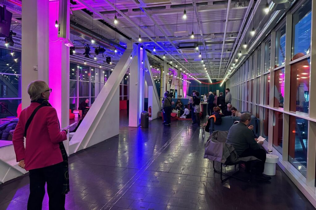 Ein besonderes Foyer: die “Brücke” im Central. Zur Premiere der “Drei Schwestern” gab es Miles-Davis-Musik – dank Ladislav Ceki, der mit zwei Damen die Bar betreut. Die Preise sind, anders als im Schauspielhaus, äußerst sozial. Einen Piccolo mit zwei Gläsern gibt’s für vier Euro. Foto: bikö