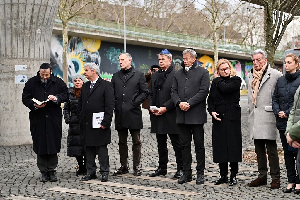 Oberbürgermeister Dr. Stephan Keller, Christof Rasche, Vizepräsident des Landtags, Dr. Daniela Lesmeister, Staatssekretärin im Ministerium des Innern des Landes Nordrhein-Westfalen, Dr. Oded Horowitz, Vorstandsvorsitzender Jüdische Gemeinde Düsseldorf K.d.ö.R., sowie Vertreter*innen der Gewerkschaften, von Fortuna Düsseldorf und anderen Organisationen legten Kränze nieder. Der Kantor der Jüdischen Gemeinde, Aaron Malinsky, sang das hebräische Trauergebet “El male rachamim”.