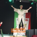 Und nicht nur Ingrid Kühne bekam stehenden Applaus. Der unerwartete Höhepunkt des Abends war Jürgen Hilger. Er dachte, er sei nur als Redner gebucht und musste sich noch beeilen zu den Rheinterrassen zu kommen, da Weissfräcke-Literat Peter Mayer am Abend mehrfach das Programm anpassen musste, weil es spontane Verzögerungen bei Künstlern gab. Hilger trug seine mit vielen Anspielungen gespickte Rede vor und endete mit der Solidaritätsaufforderung an alle „Jacques Tilly ist ein Held“.