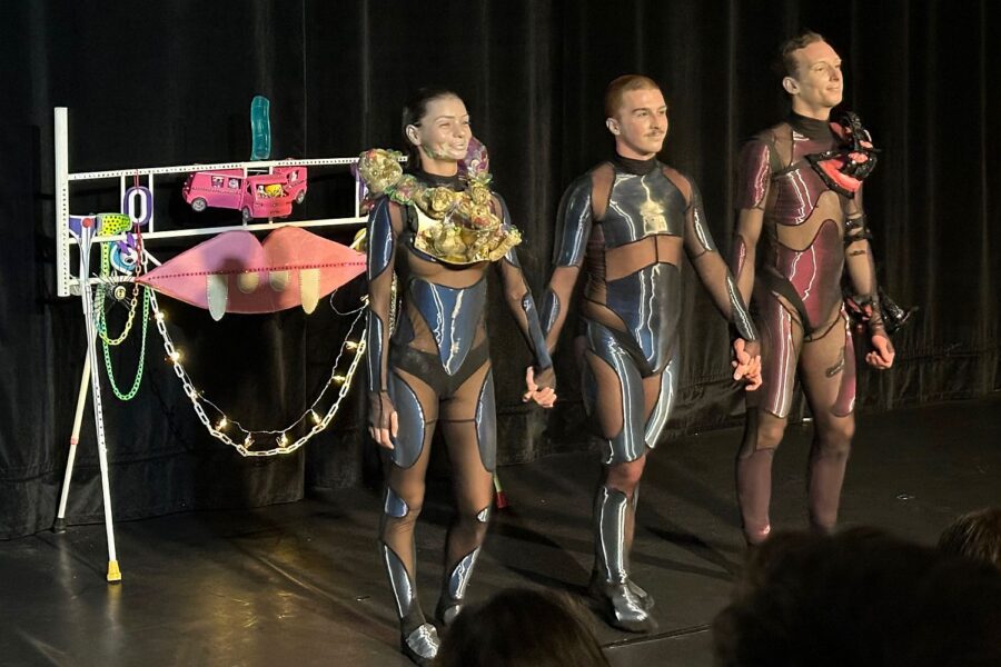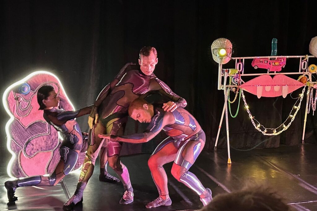 “Blink and Bite” (von links): Helena Gonçalves, Ryan Drobner und Mattia Serio beim Auftritt im Theatermuseum. Foto: bikö