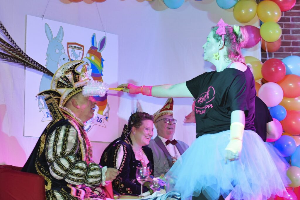 Punkt 19.11 Uhr begann alles mit dem Einmarsch der jecken Tollitäten – groß wie klein – und dem Elferrat, der sich zu Ehren den Prinzen im Arzt-Outfit zeigte. Die Ansprache von Prinz Robert I. (Wiskandt) und seiner Prinzessin Anita II. zeigte, dass die beiden die Herzen der karnevalsbegeisterten Unterbacher längst erobert haben.