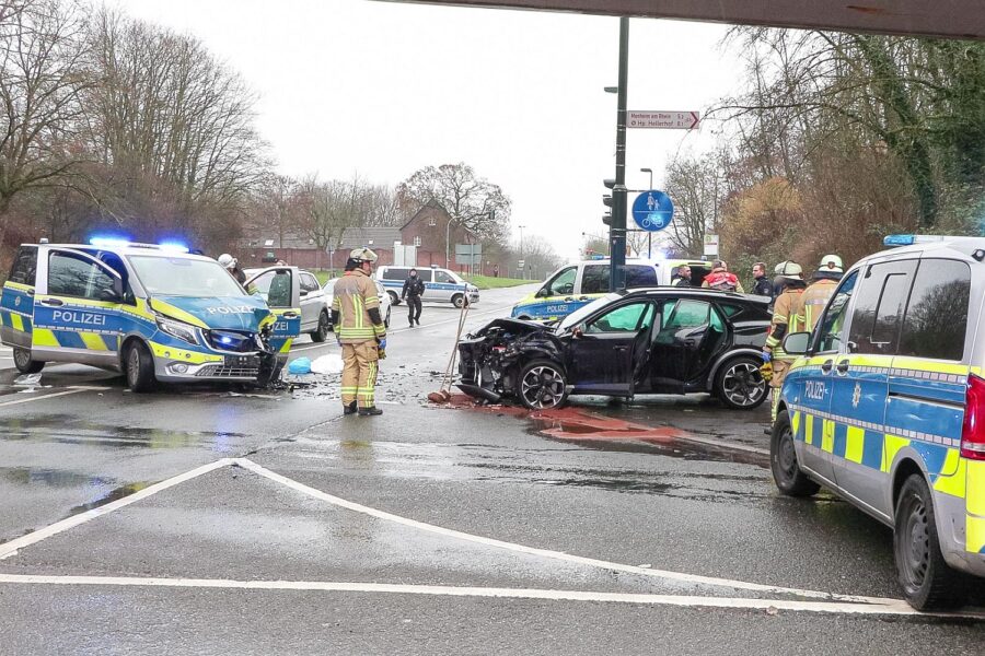 Home›Düsseldorf›Blaulicht›Düsseldorf Hellerhof: Drei Verletzte bei Zusammenstoß von Einsatzfahrzeug der Polizei mit Pkw