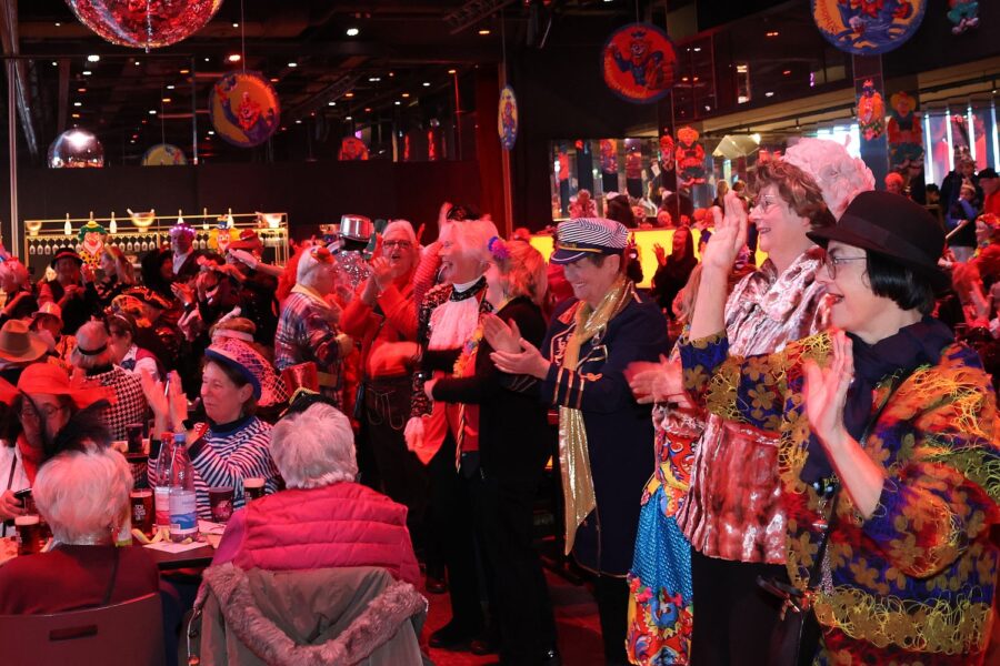 Im Hinkelsaal – schließlich war Bürgermeister Josef Hinkel anwesend – feierten rund 400 Senior*innen am Dienstag (3.2.) fröhlich Karneval mit einem bunten Programm. Eingeladen hatte die Bürgerstiftung Düsseldorf und durch den Nachmittag führte in seiner bekannt charmanten Art Andreas Mauska. Dabei wurde er von Claus Momburg unterstützt, der sich bei der Bürgerstiftung um den Bereich Senioren kümmert.
