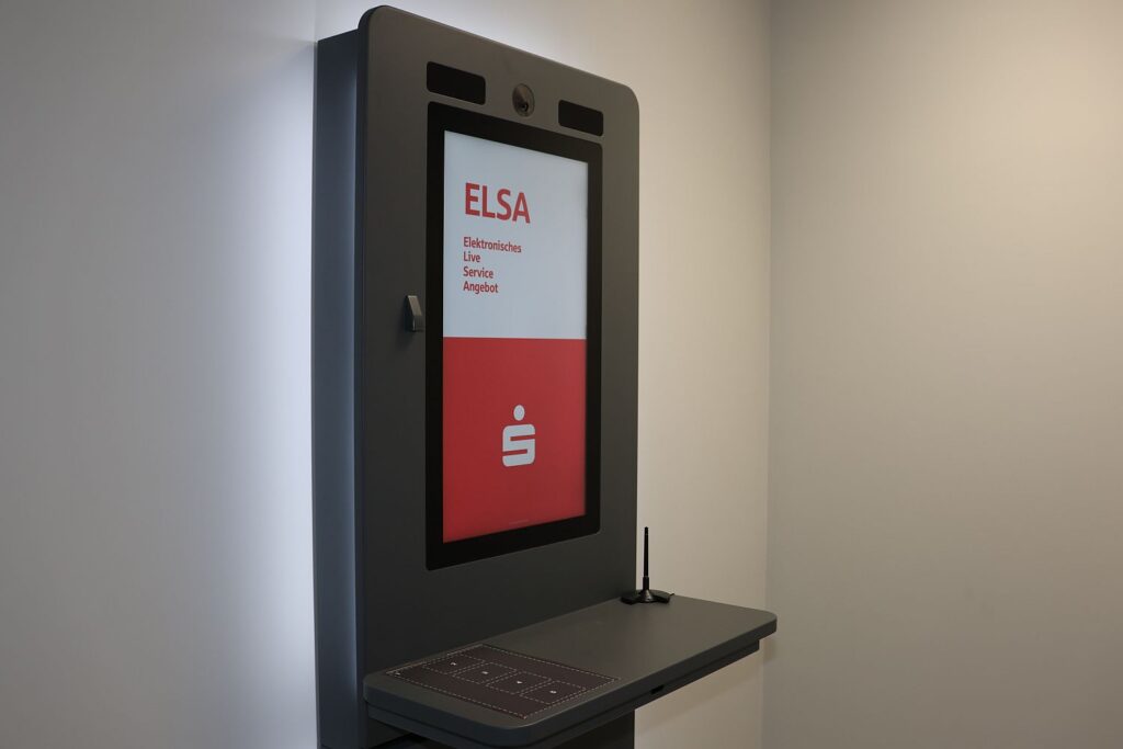 Auf den ersten Blick hat sich von außen nicht viel getan. Aber bereits im Foyer der Filiale merken die Kunden, dass sich innen einiges verändert hat. Moderne Geldautomaten und SB-Terminals befinden sich ebenso im Eingangsbereich, wie in einem separierten Bereich die Möglichkeit über ein „Elsa-Terminal“ mit einem Sparkassenmitarbeiten Kontakt aufzunehmen und seine Bankgeschäfte zu erledigen.
