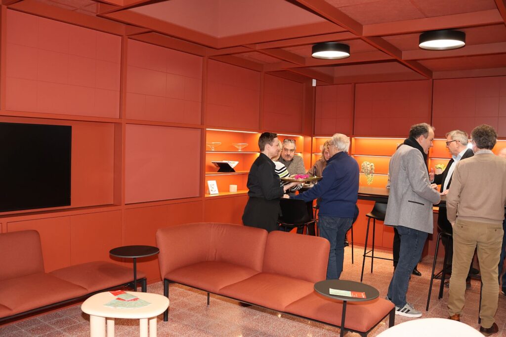 Es gibt einen großzügigen Wartebereich für die Kunden, wo man auch ein Getränk genießen kann