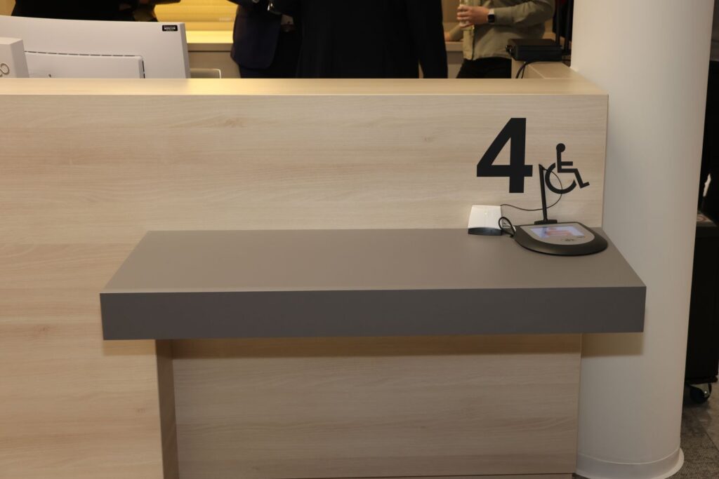 Aber auch die bekannten Gesichter der Beschäftigten der Filiale gibt es noch. Die Servicezeiten sind montags und mittwochs von 9 bis 13 Uhr und 14 bis 17:30 Uhr sowie freitags von 9 bis 13 Uhr. Bevor man an einen der vier Serviceschalter gelangt, gibt man an einem Terminal sein Anliegen ein. Dann erhält man statt einer Wartenummer ein Symbol, was auch Menschen den Kontakt ermöglicht, die mit Zahlen oder Buchstaben Probleme haben. In einem großzügigen Wartebereich mit Sitzplätzen gibt es dann eine Infowand, auf der das Symbol angezeigt wird und auch, an welchen Schalter man sich begeben soll.