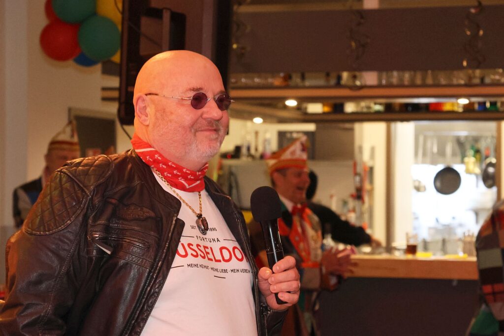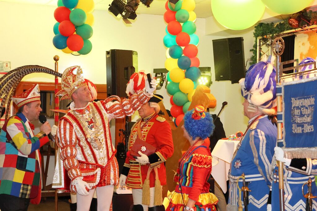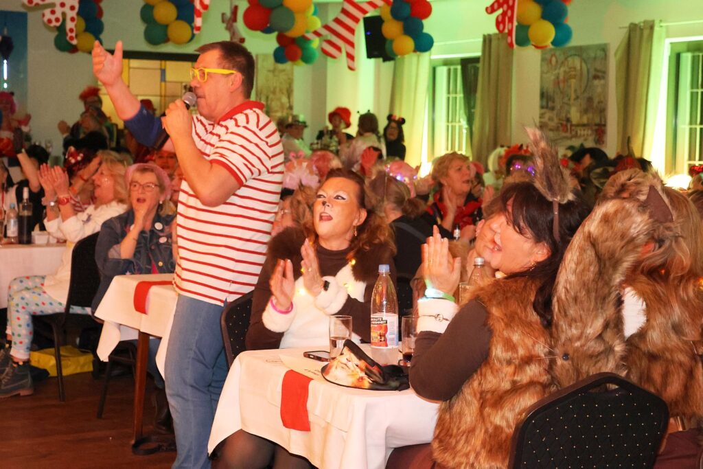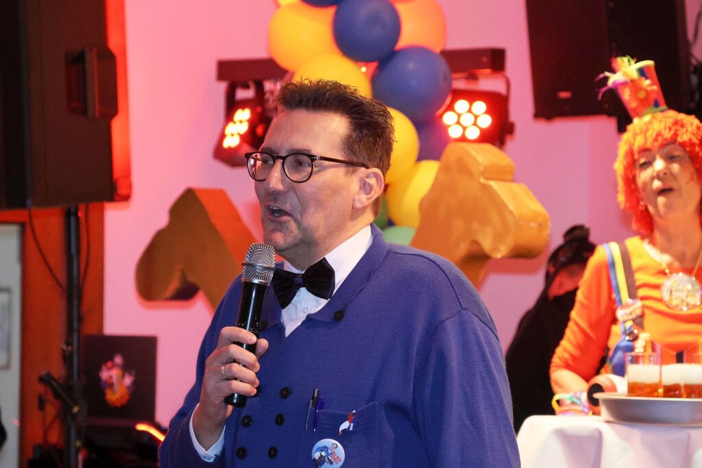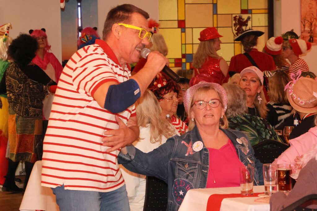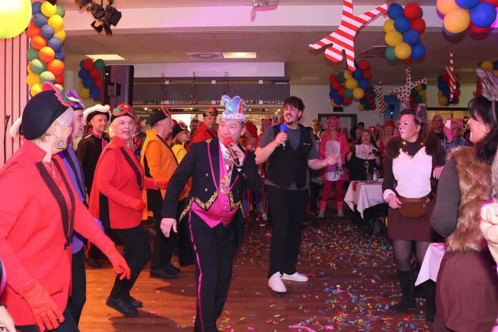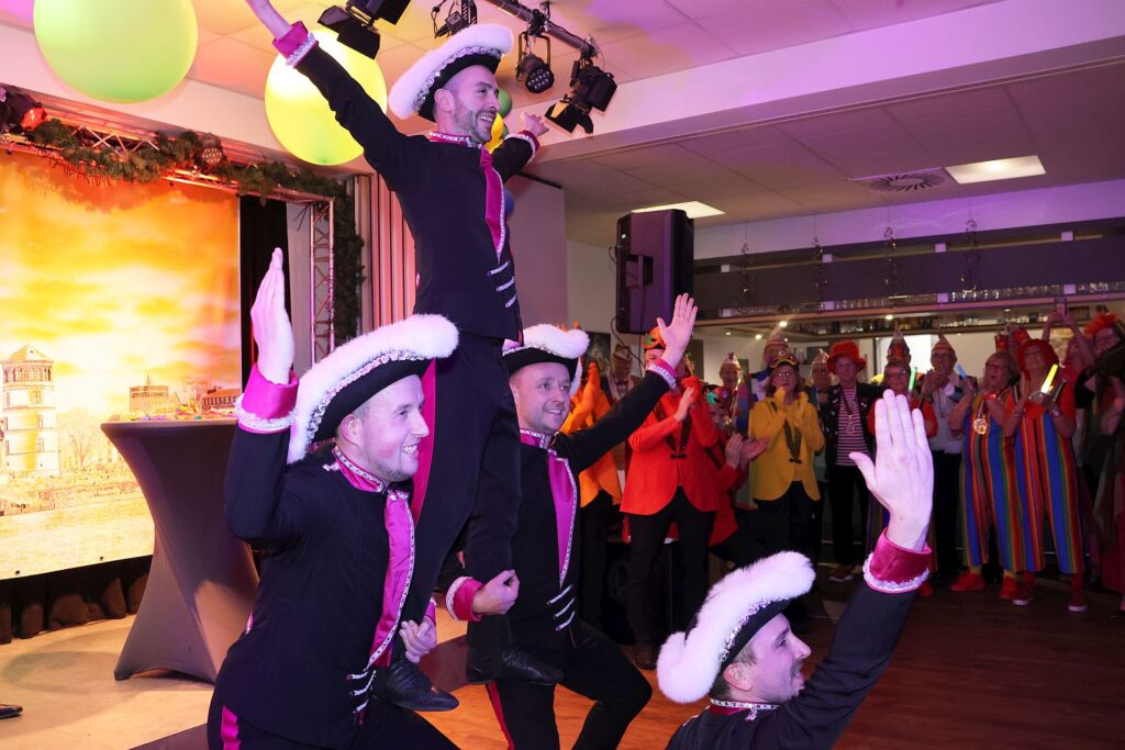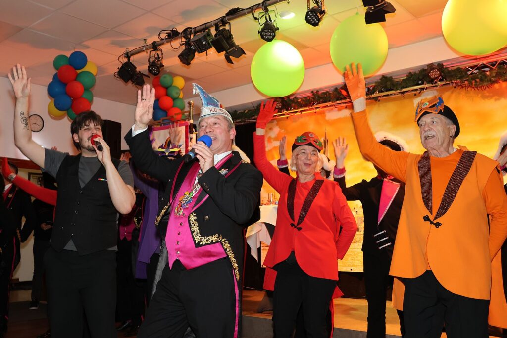 Kaum jemand saß anschließend noch, als die KG Regenbogen die Damen komplett wuschig machten. Präsident Andreas war besonders begeistert von einer Gruppe Eichhörnchen-Frauen. Mit Sänger Max Weyers, der Auftrittsgruppe und den Tänzern bot der Ex-Prinz eine tolle Show und hätten gerne noch den ganzen Abend weitermachen können. Der Abschluss im Programm übernahm Rainer Lieverscheidt, der nach einer Pause wieder in die Düsseldorfer Karnevalswelt zurückgekehrt ist.