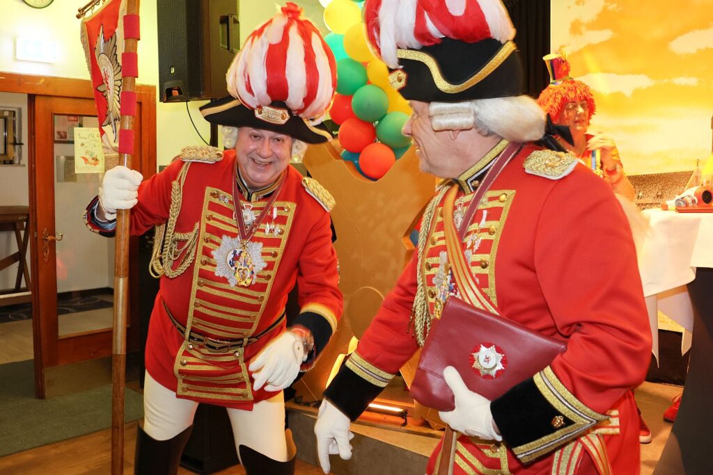 Das war perfekt gemischt zwischen charmanten Rednern und flotter Musik. Manni der Rocker und Olli der Köbes trafen den Geschmack der Mädels und durften nicht ohne Zugabe geben. Die unglaublich braven Buben (DubB), Heiner und Sebastian, machen bereits seit fast 30 Jahren Musik und haben es nicht verlernt. Sie ließen eine Polonaise durch den Saal rollen und versagten Präsidentin Gerty nicht den Wunsch nach dem uralten Lied „Berger Pension“.