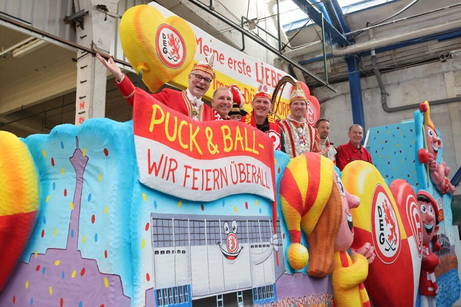 Vereint in der 2. Liga und im Karneval: DEG und Fortuna Düsseldorf mit gemeinsamen Rosenmontagswagen
