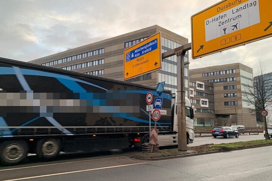• Düsseldorf Itter: Lkw-Fahrer kracht auf der Münchener Straße in den Grünstreifen