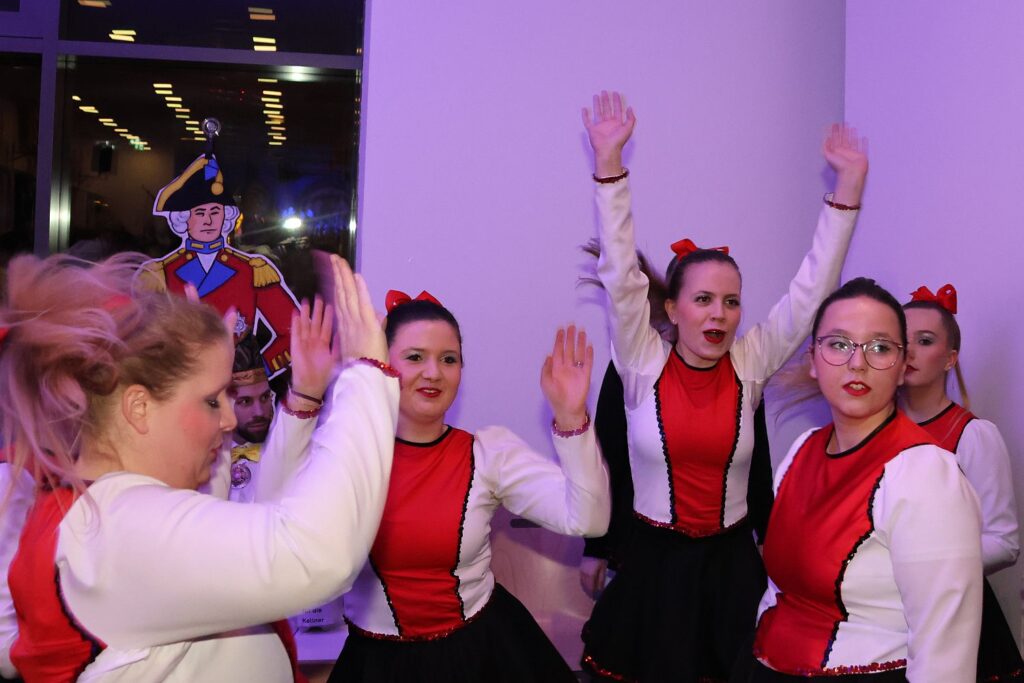 War das Publikum bis zu diesem Zeitpunkt eher aufs zuschauen beschränkt, änderte sich das mit der Band Alt Schuss. Und auch die KG Regenbogen rockte den Saal. Ex-Prinz Andreas Mauska genießt offensichtlich, dass er wieder mit seinen Regenbogenkarnevalisten unterwegs sein kann und sein typisches „Hoppa“ erklingen läßt.