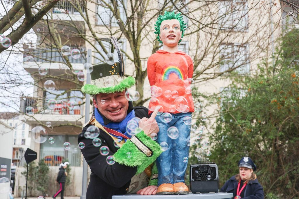 Über 120 Mitglieder hat die KG Jeckes Grafental und am Sonntag (8.2.) wurde beim Frühschoppen ihr eigener Säulenheiliger präsentiert. Der Grafentaler – einen richtigen Namen soll er noch bekommen – wurde von Christoph Pöggeler designed. Er ist eine kleine Ausgabe, damit er in einem Pkw transportiert und auf einem Anhänger installiert werden kann. Denn am Karnevalssonntag (15.2.) wird er sein Debüt mit einer Fußgruppe von rund 70 Personen beim Veedelszoch in Gerresheim haben.