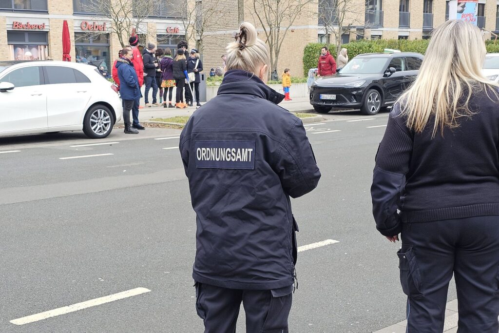 Das Ordnungsamt kam bereits um 12:43 Uhr – da wurde nur nach Falschparkern geschaut. Um 14:15 Uhr ging es in der zweiten Runde dann um die Lautstärke, Foto: Karina Hermsen