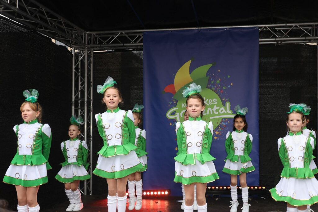 Doch noch mehr zum Frühschoppen: Neben den Anwohner*innen waren Vertreter*innen der Närrischen Schmetterlinge, der KG Regenbogen, der Nordlichter, der Sauband, der Uzbröder und die Adjudantur des Stadt Prinzenpaars Selm gekommen. Sie trugen teilweise zum Bühnenprogramm bei. Dafür reisten aber auch Heinz Hülshoff, die Minigarde der Gerresheimer Bürgerwehr, die Wimmer Band, die Hammer, die Swinging Funfares und die KG Regenbogen an. Im Laufe der Jahre prächtig entwickelt haben sich die Grafentaler Tanzmariechen. Die neun Mädchen tanzten zu “Nie mehr Aschermittwoch” und “Düsseldorfer Nächte”.