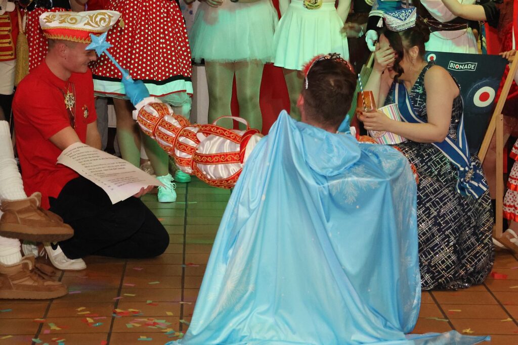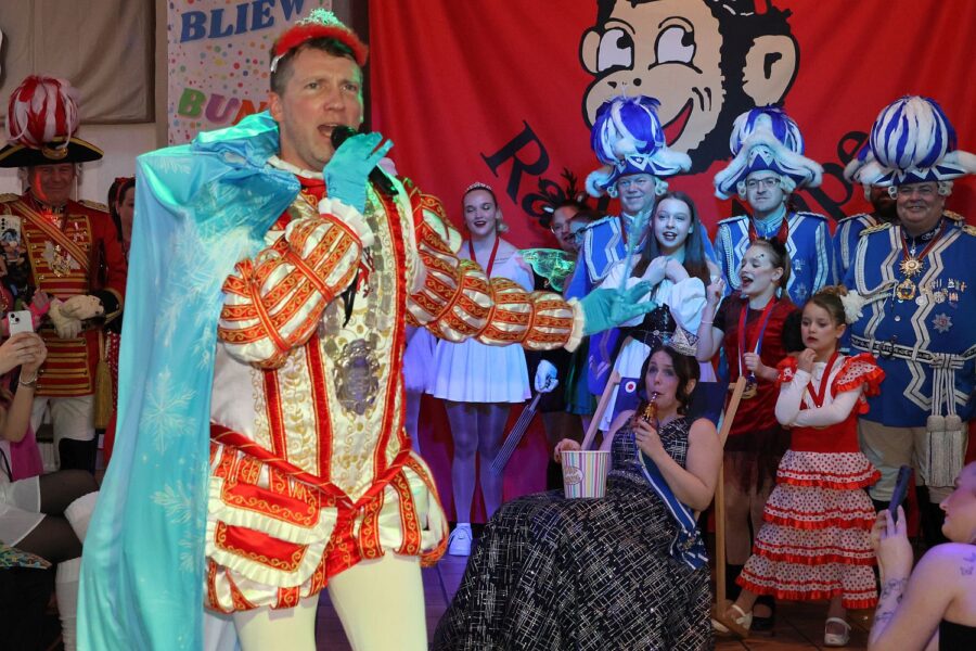 Zeit zum Genießen hatten auch die Rather Aape für Venetia Nicole eingeplant. Denn beim Mädels-Alarm am Freitagabend (13.2.) stand sie selbstverständlich im Mittelpunkt. Ihr wurde ein Liegestuhl hingestellt, Popcorn und ein Drink serviert und schon konnte die Show beginnen. Denn die Venetia mag Kino und Walt Disney. Aus Prinz Marcus wurde mit eisblauem Kleid, Diadem, Zauberstab und blauen Handschuhen die Eiskönigin Elsa gemacht, die perfekt das Lied „Lass jetzt los“ performte.