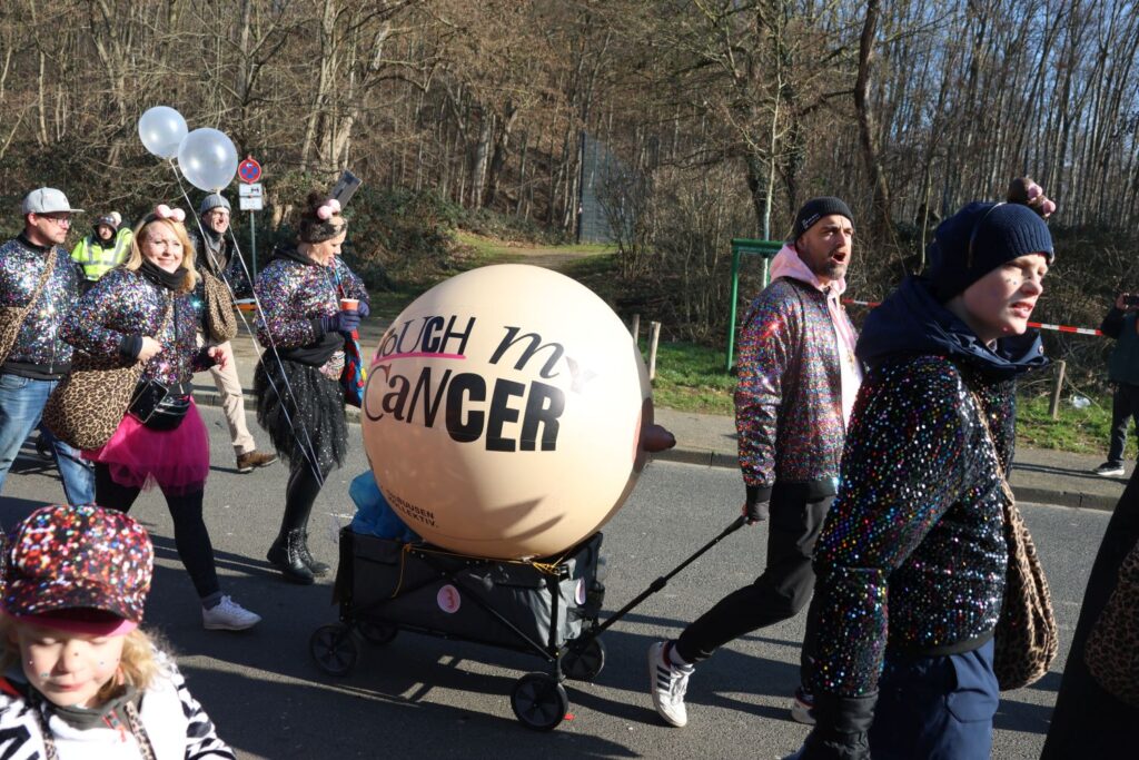 Aber auch ernste Themen fanden Platz. Die Buusenfreundinnen machten eindringlich auf das Thema Brustkrebs und Vorsorge aufmerksam – auch wenn sich der ein oder andere Zuschauer bei den recht großen luftgefüllten Brüsten vielleicht zuerst gefragt hat, was das in einem Veedelszoch zu suchen hat.