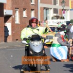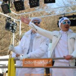 Rustikal in Kartoffelsäcke gehüllt waren die Hubbelrather gekommen. Ihre Gruppe wurde von einem Traktor angeführt, auf dem das rote Pferd der Hubbelrather montiert war. Das war übrigens das einzige Pferd im Zug. Auf den Einsatz lebender Tiere wird in Gerresheim auch von der Gerresheimer Bürgerwehr verzichtet. Sie sind auf Traktoren und Quad umgestiegen.