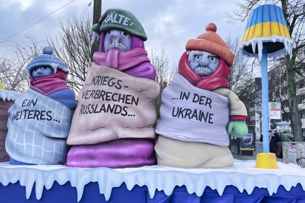 Beim Ukraine-Wagen ist zwar Putin nicht abgebildet, doch die Kritik an seinem Kälte-Krieg wird deutlich.