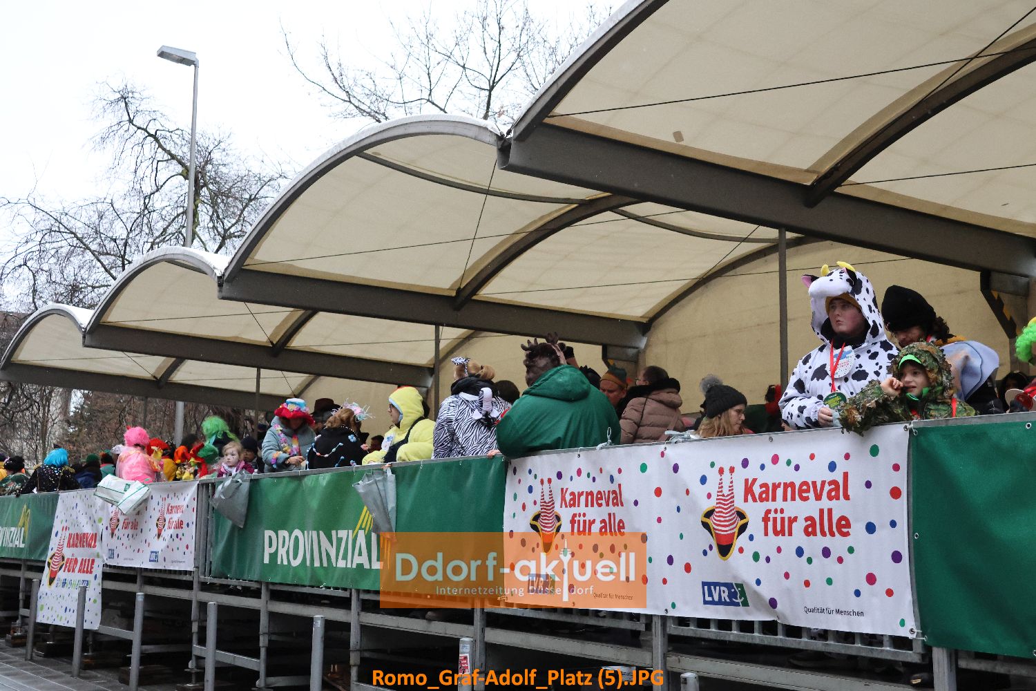 Hier die Eindrücke vom Rosenmontagzug vom Graf-Adolf-Platz. Dort stand erneut die Behinderten-Tribüne, die auch denen eine gute Sicht ermöglichte, die im Gewimmel am Straßenrand zu kurz kommen.
