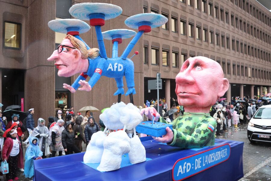 Mit Spannung wurden die dreizehn Mottowagen von Jacque Tilly erwartet, aber auch so mancher Gesellschaftswagen präsentierte deutliche Botschaften.