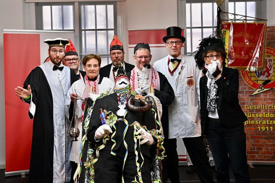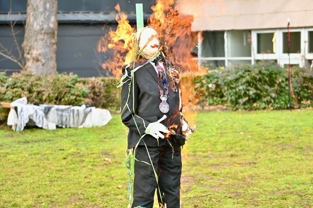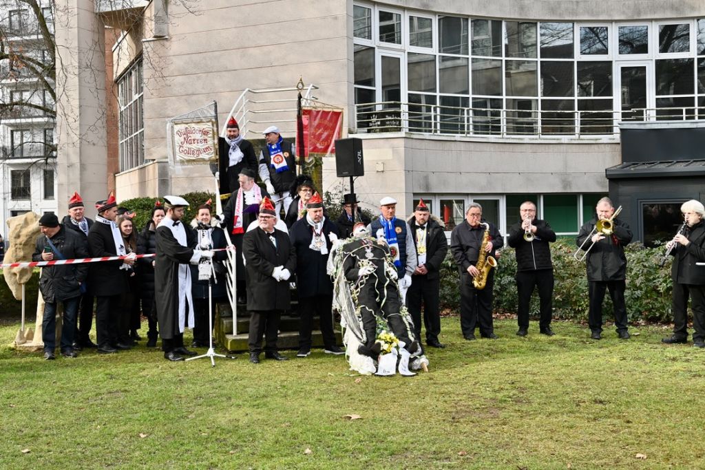 Sei’s drum, nun lag er auf der Bahre und wurde unter Tränen auf seinem letzten Weg in den Rosengarten des Stadtmuseums begleitet. Dort kam es zur traditionellen Verbrennung. Und alle freuen sich bereits jetzt auf den 11. November, wenn er wieder aus seinem Senftopf steigt und die neue Session beginnt.