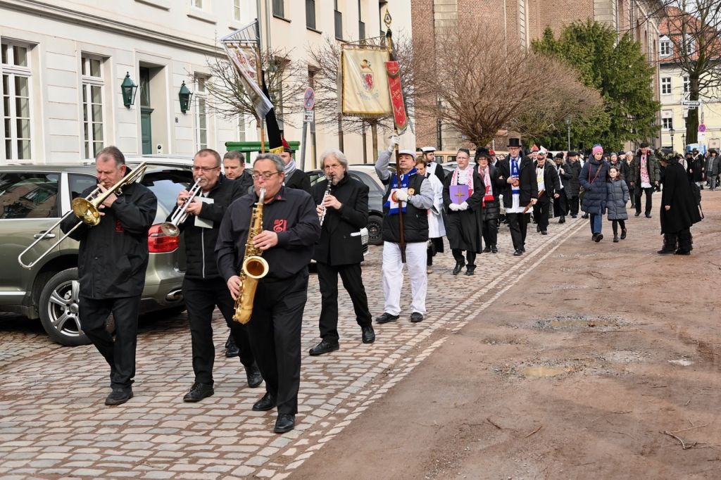Bereits vor 11:11 Uhr waren Schluchzer zu hören, denn die Trauer der Gäste im Saal war groß. Übertönt wurden diese anfänglich noch vom Orchester ArDo, aber spätestens bei den Trauerreden wurde die Wehklagen lauter. Als Pastörchen debütierte der Baas der Altstädter Bürger-Gesellschaft Düsseldorf, Uwe Triebel.
