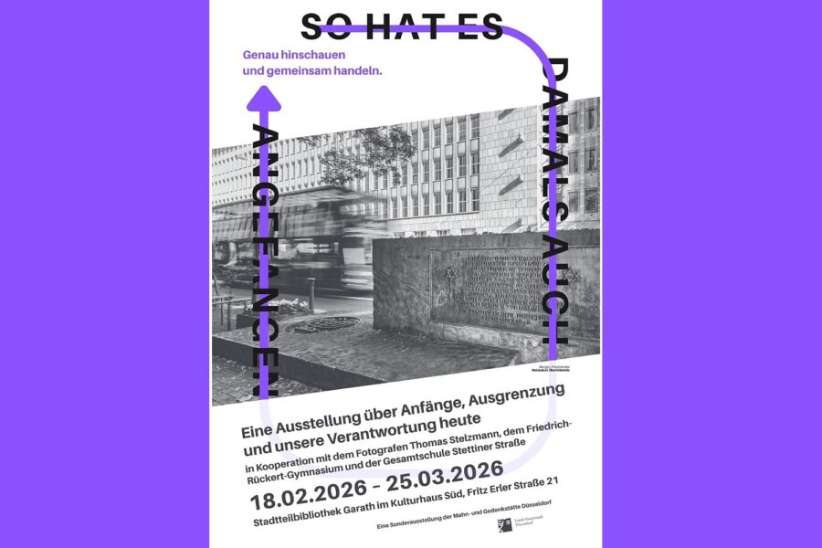 In der Garather Stadtteilbibliothek im Kulturhaus Süd wurde am Donnerstag (19.2.) die Ausstellung der Mahn- und Gedenkstätte “So hat es damals auch angefangen” eröffnet. Der Titel geht auf das Zitat der Holocaust-Überlebenden Margot Friedländer (1921-2025) zurück. Die Schau wird bis zum 25. März 2026 zu sehen sein. Da am 23. Februar eine Veranstaltung der AfD mit Gast Björn Höcke im Kulturhaus Süd geplant ist, bekommt die Ausstellung damit noch eine ganz besondere Bedeutung.