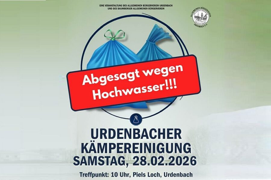 In diesem Jahr muss die Reinigung, die für Samstag, den 28. Februar geplant war, leider wegen Hochwasser ausfallen. Da zwischen dem 1. März und dem 30. September Vogelbrutzeit ist und entsprechende eine Schonzeit gilt, ist eine Verschiebung nicht möglich.