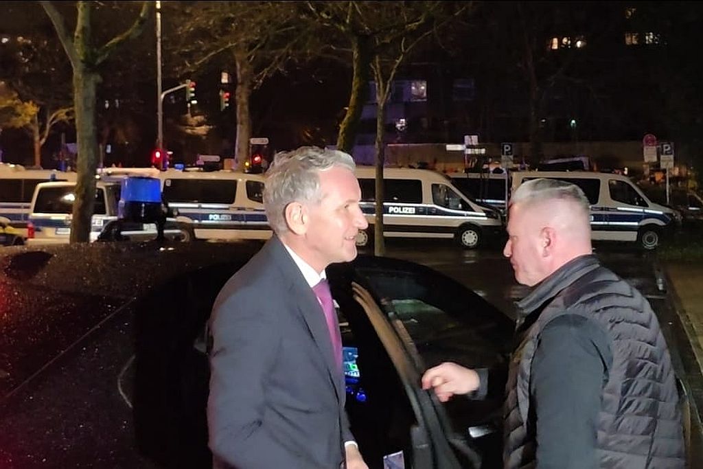Björn Höcke bei seiner Ankunft am Kulturhaus Süd, Foto Infozentrale