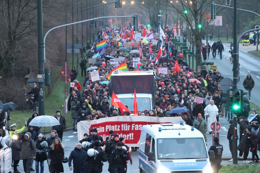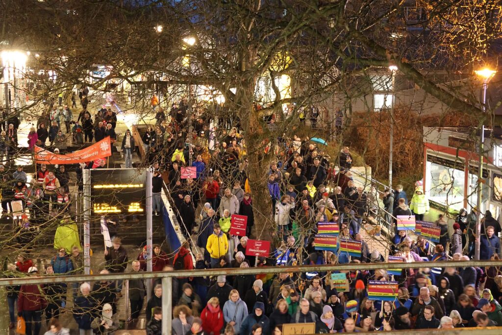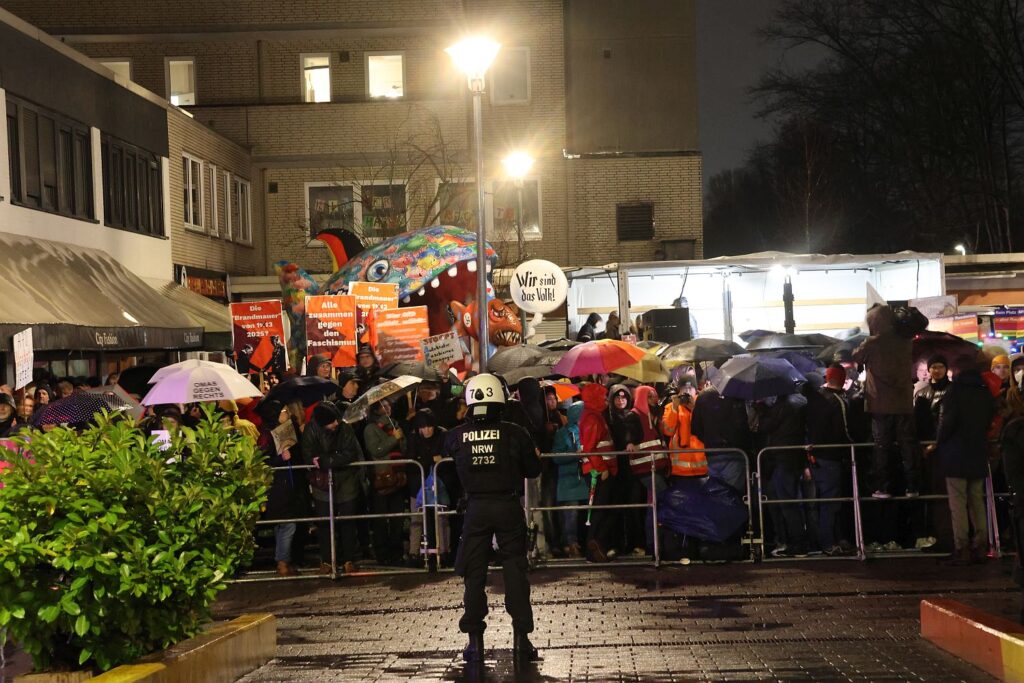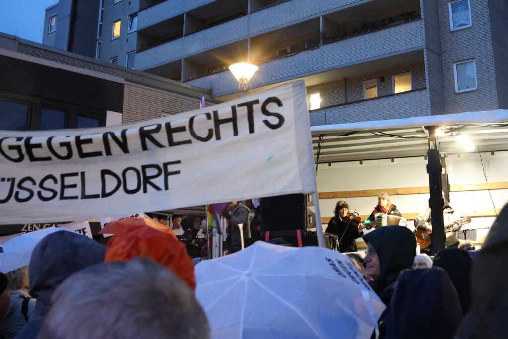 Der Besuch von Björn Höcke beim Kreisverband der Düsseldorfer AfD am Montagabend (23.2.) im Kulturhaus Süd hat Tausende von Menschen dazu gebracht, ein deutliches Zeichen zu setzen. Selbst Regen konnte die vielen Bürger*innen nicht daran hindern, eindrucksvoll zu zeigen „wir sind mehr“.
