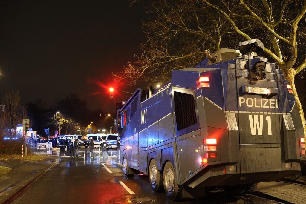 Die Polizei hatten einen Wasserwerfer einsatzbereit