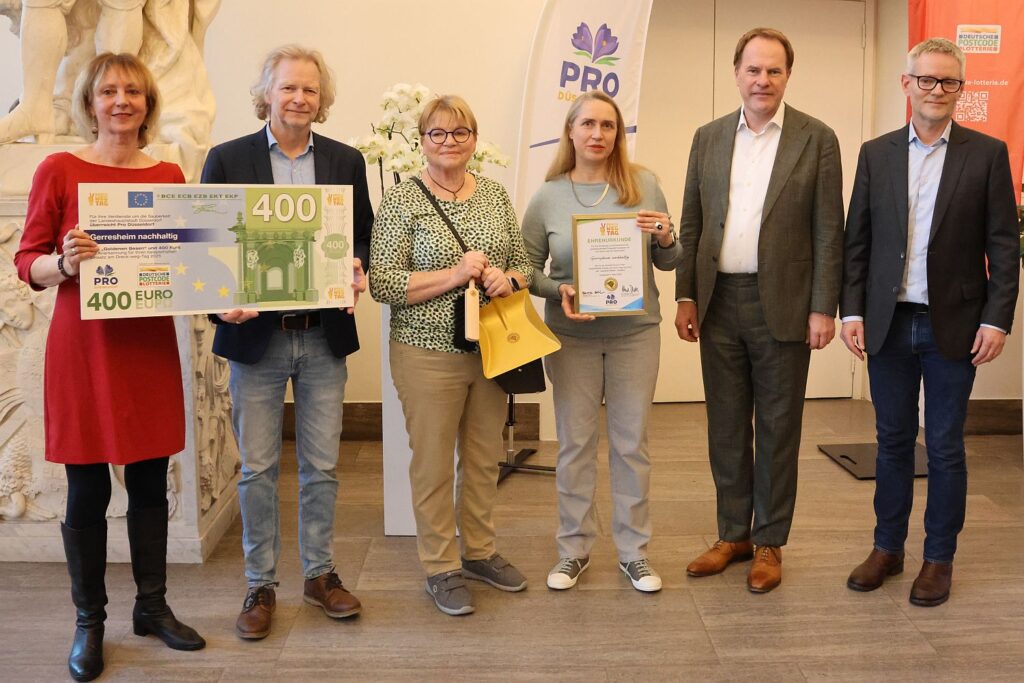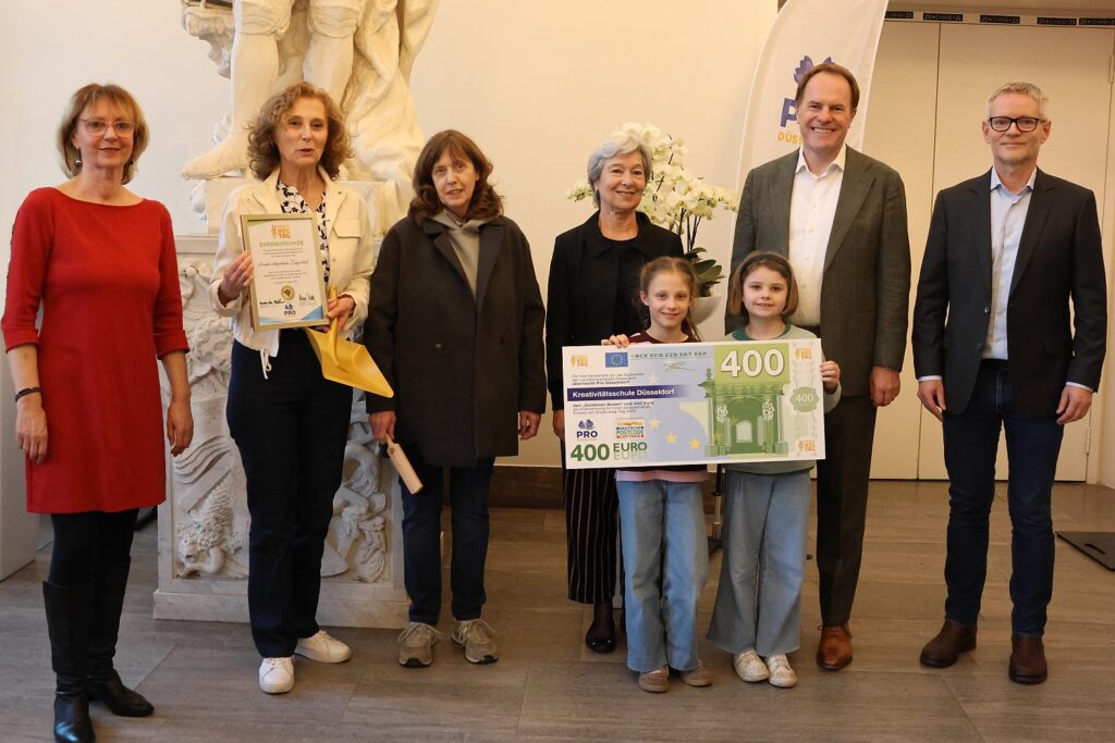 Das Team der AWISTA, der Verein Kreativitätsschule Düsseldorf und die Initiative “Gerresheim Nachhaltig” waren am Mittwoch (4.3.) in den Jan-Wellem-Saal des Rathauses eingeladen, um ihre Auszeichnungen entgegenzunehmen. Das ist zwar kein „goldener Besen“ mehr, sondern eine praktische goldene Kehrschaufel mit Handfeger und dazu eine Urkunde sowie ein Scheck über jeweils 400 Euro.