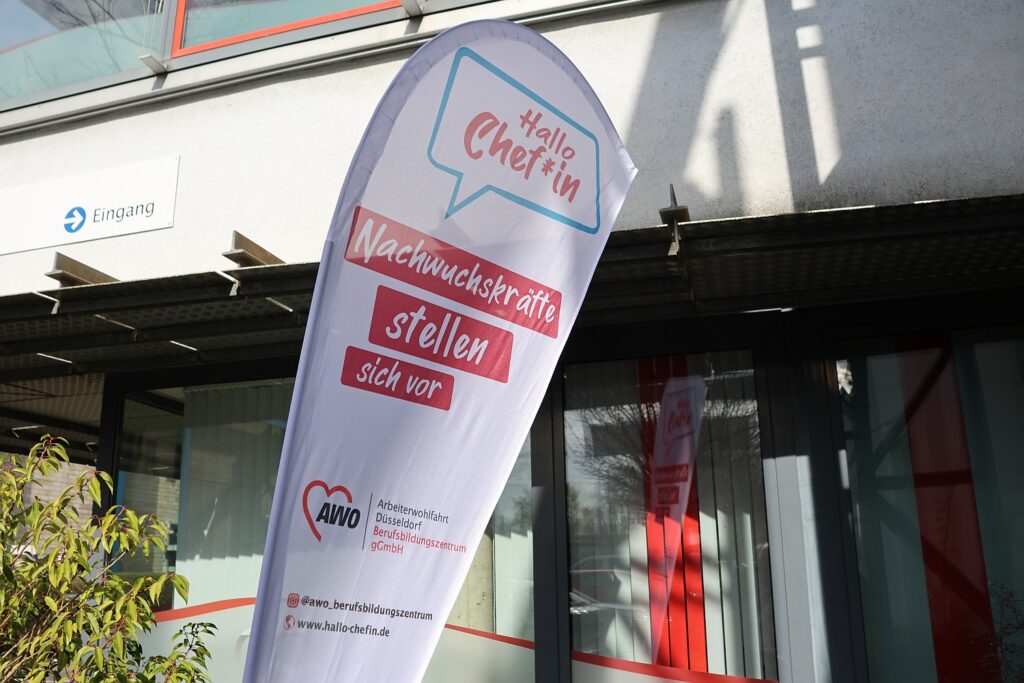 Auf der jährlichen Azubi-Messe „Hallo Chef*in“ werden im AWO Berufsbildungszentrum am Flinger Broich Unternehmen und Ausbildungsinteressierte in direkten Kontakt gebracht. Am Donnerstag standen Vertreter*innen der WfaA, von Edeka Kels, Lichtechnik Hessling, W+W Aufzugskomponenten, Neuroärzte, AWO, Böhlert GmbH, DHL, Schminke 3D Druck und Stadt Düsseldorf bereit, um mit den Interessierten über mögliche Praktika oder Ausbildungsmöglichkeiten zu sprechen. Besonders Praktika bieten beiden Seiten die Gelegenheit sich und die Aufgaben kennenzulernen.