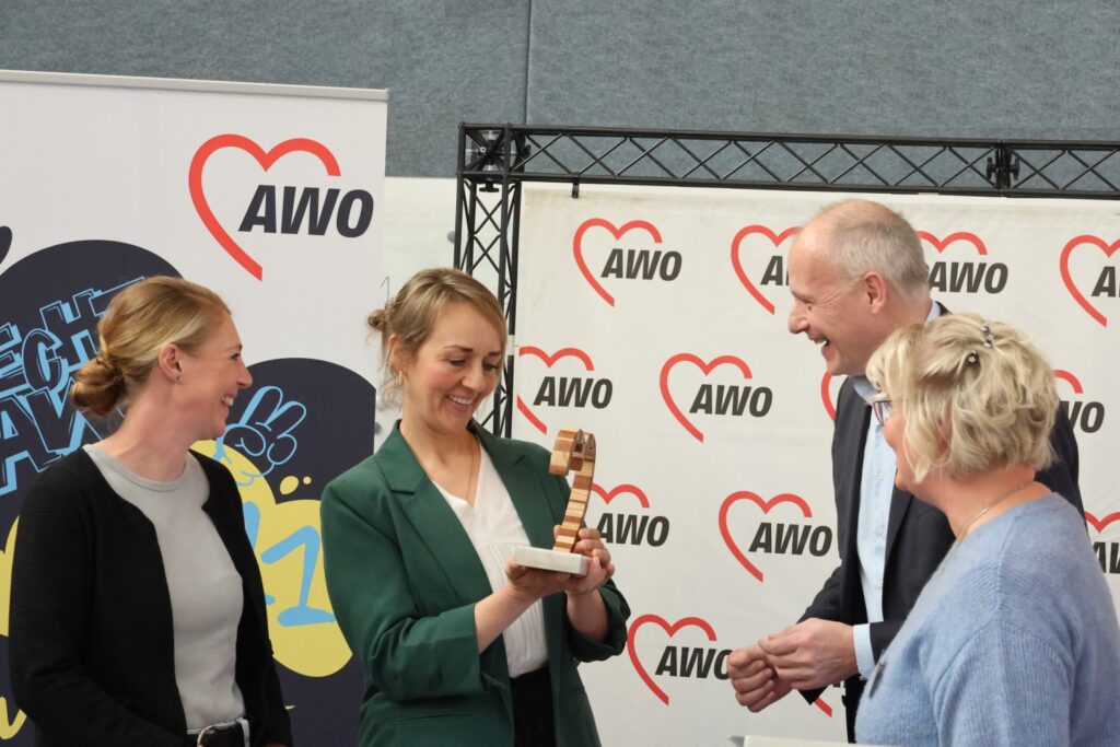 „In der Zusammenarbeit mit dem Berufsbildungszentrum konnten wir jungen Menschen beispielsweise mit Angsterkrankungen neue Wege eröffnen. Es ist wichtig, junge Menschen ernst zu nehmen und gerade denjenigen eine Chance zu geben, die es im Leben aus verschiedenen Gründen nicht leicht haben. Alle Menschen sollten die Möglichkeit bekommen, sich beruflich zu entwickeln und zu beweisen. Die Auszeichnung, die ich jetzt von der AWO erhalte, empfinde ich als große Wertschätzung meines Engagements“, freute sich Christina Tschorn bei der Verleihung.