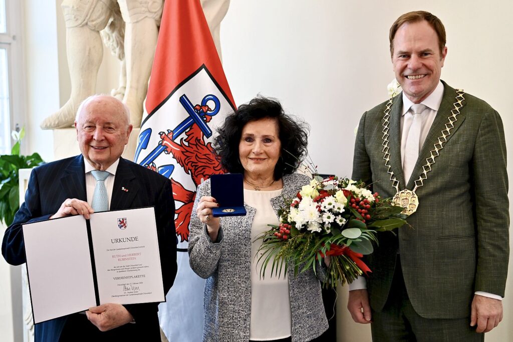 Oberbürgermeister Dr. Stephan Keller: “Mit großer Ausdauer und persönlicher Hingabe engagieren sich Ruth und Herbert Rubinstein seit vielen Jahren für Aufklärung, Dialog und Erinnerung. Ihr Einsatz für die Jüdische Gemeinde Düsseldorf, für interkulturelle Zusammenarbeit und für die Städtepartnerschaft mit Czernowitz stärkt unsere demokratische Gesellschaft weit über Düsseldorf hinaus. Mit der Verleihung der Verdienstplakette würdigen wir dieses herausragende Wirken und sagen von Herzen Danke.”