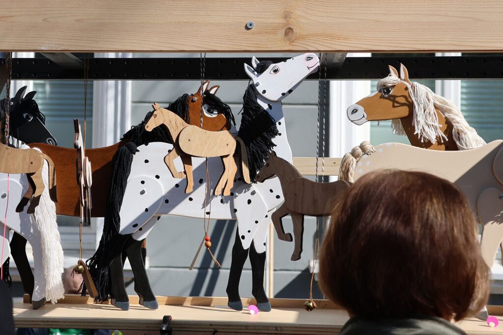 Pferde, deren Kopf und Beine mittels einer Schnur bewegt werden, bot Katharina Graefe an