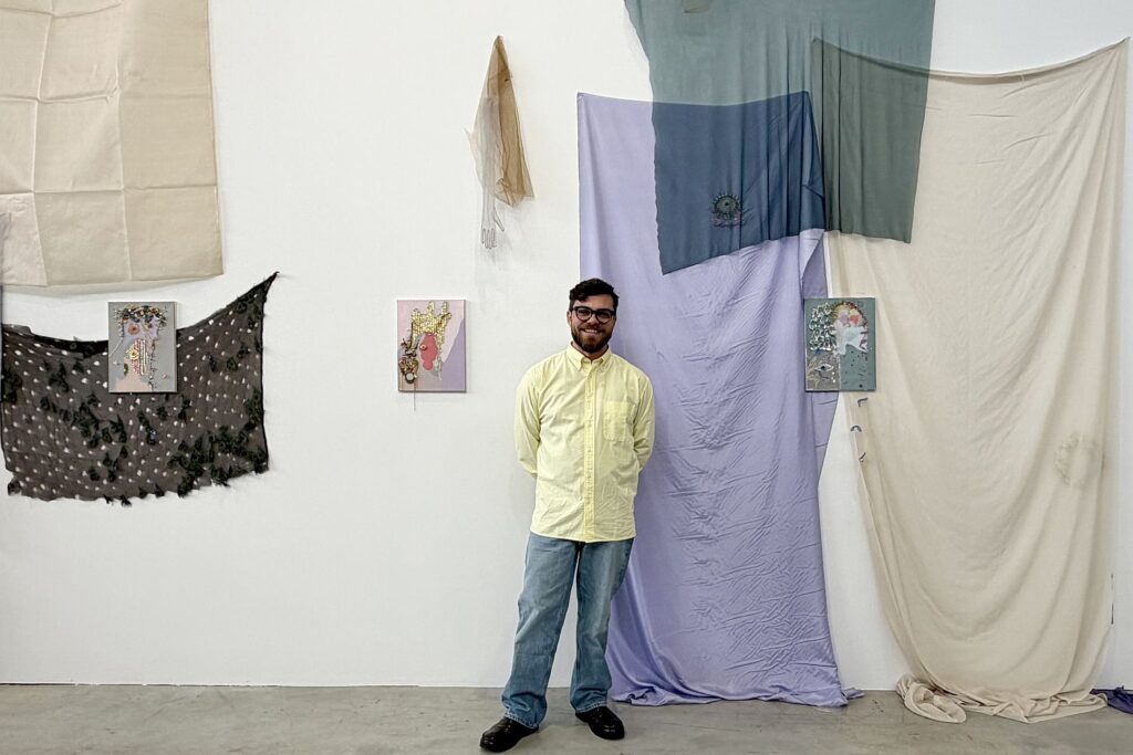 Aus Stoffen und Collagen schuf Ruben Benjamin Smulczynski eine poetische Wandinstallation. Foto: bikö