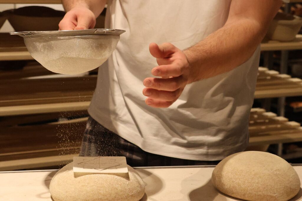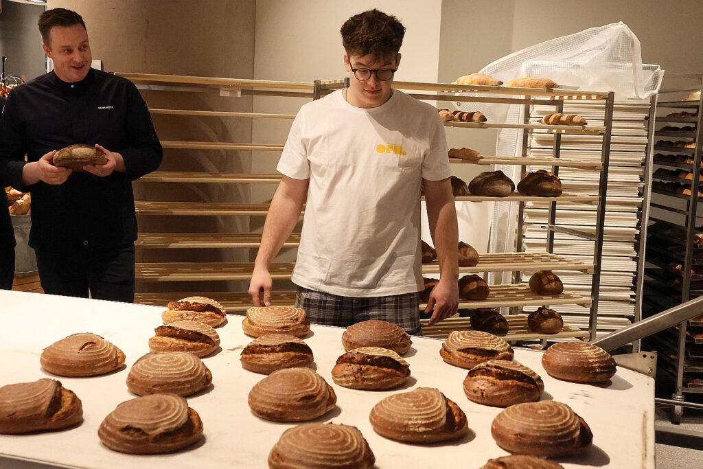 Und hergestellt werden ganz besondere Brote. Vier Sauerteigbrote, die zunächst dienstags bis samstags vor Ort gebacken werden. Hinter der Rezeptur und der Idee des hochwertigen Sauerteigbrots steht Noah Waschull. Der 24-Jährige ist Bäckermeister und Betriebswirt und hat lange getüftelt, bis die perfekte Teigmischung feststand. Denn die Sauerteigbrote bestehen nur aus Mehr, Wasser und Salz. „Durch eine Reifezeit von fast 48 Stunden kann der Teig in Ruhe fermentieren. Dabei werden unter anderem Phytinsäure und bestimmte Kohlenhydrate abgebaut. Damit sind die im Teig befindlichen Mineralstoffe besser verfügbar. Viele Menschen werden unser Sauerteigbrot als besonders bekömmlich empfinden“, erläutert Waschull und fügt hinzu „Weniger ist mehr – dieses Motto trifft hier auf jeden Fall zu“. Das Geheimnis ist vermeintlich einfach: gute Zutaten und viel Zeit, damit der Teig in Ruhe gehen kann.