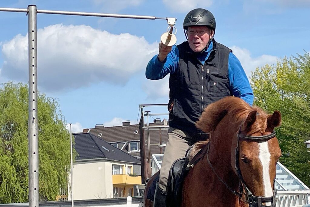 Also kam es zu einem Stechen um den Siegerpokal und die Osterpräsente zwischen Katharina Grenzer (Reiterkorps Wersten) und Lia Kessler (Reitercorps Flingern). Dafür wurde die Ringgrößte auf 2,5 Zentimeter reduziert und damit der Schwierigkeitsgrad nochmals erhöht. Grenzer war schließlich besser und holte sich den Wanderpokal und die Oster-Leckereien. Schiefer und Deller landeten auf Platz sieben, Hahne auf Platz neun. Neben dem Stolz auf die gelungene Veranstaltungspremiere des Organisations-Duos, freute sich Hahne auch über den Erfolg „seiner“ Reiterinnen, belegten sie doch die Plätze eins, drei (Lorena Saia) und vier (Laijla Begic).