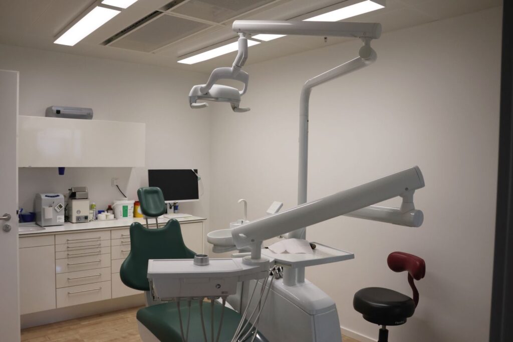 Unter den 40 Mitarbeitenden sind sechs Zahnärzt*innen, zwei Kieferorthopäd*innen und vier Kräfte für die Prophylaxe. Geöffnet ist morgens ab 7:30 Uhr und je nach Tag geht es bis 16 oder 18 Uhr. Ein eigenes Labor ist ebenso vorhanden, wie eine Einheit für die Sterilisierung der Geräte. Vom ersten Zahn über Kieferorthopädie, Wurzelbehandlung, Implantaten und sonstigem Zahnersatz wird alles unter einem Dach mit kurzes Wegen angeboten. Für Kinder gibt es speziellen Behandlungsliegen, bei denen bei Bedarf auch mit Lachgas Erleichterung verschafft wird.