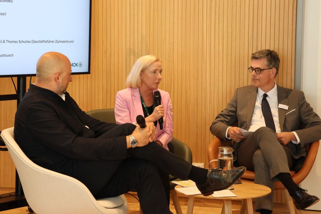 Nach dem Empfang an einem Tresen, der eher an die Lobby eines Hotels erinnert, werden die Menschen je nach Anliegen in Bereiche begleitet, die unterschiedliche Privatsphäre ermöglichen: offene Tische mit Stühlen, Gesprächsecken oder auch separate mit Glaswänden abgetrennte Zimmer. Die Berater*innen haben ihren Laptop dabei und können viele Anliegen sofort und unkompliziert regeln. Ist ein Fachberater erforderlich, wird an diesen vermittelt. Über Bildschirme können auch Sachverhalte gemeinsam betrachtet werden. „Neben der klassischen Beratung wird es auch Angebote, Informationen und kleinere Aktionen rund um Gesundheit und Prävention geben. Wir richten unseren Service noch stärker als bisher an den individuellen Bedarfen unserer Kundinnen und Kunden aus,“ erklärte Betzer.