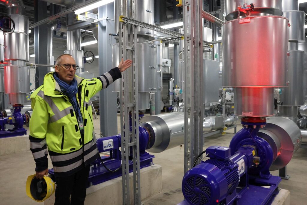 Die Idee dazu gab es schon im Jahr 2011. Doch Innovationen brauchen Zeit und Geld. Bereits 2022 hatten die Stadtwerke und Henkel eine Klimaschutz-Kooperation besiegelt. 2023 starteten die Arbeiten für die Umsetzung des großen Projekts und seit Anfang 2026 läuft die Energiezentrale im Probebetrieb. Es gibt zwei Wärmequellen auf dem Henkel-Gelände. Das ist zum einen die Abwärme vom Kraftwerk, die von 185 Grad auf 85 Grad heruntergekühlt wird und das dabei entstehende warme Wasser wird in die Energiezentrale eingespeist. Die zweite Quelle ist der Dampf des Kraftwärmekoppelungsprozess. Über die Energiezentrale wird die die Wärme in das Fernwärme-Netz eingespeist. Rund 35 Prozent des Bedarfs der Stadtteile Benrath und Garath kann damit gedeckt werden. Die Anlage kann über das Heizkraftwerk Garath ferngesteuert werden, so dass nur zwei Mal pro Woche ein Mitarbeiter in Holthausen kontrolliert, ob alles in Ordnung ist. Eine neue rund 3,6 Kilometer lange Fernwärmeleitung wurde vom Henkelwerk in Richtung Süden gebaut. Die Bürger*innen haben das unter anderem durch die intensiven Bautätigkeiten mit Straßensperrungen mitbekommen.